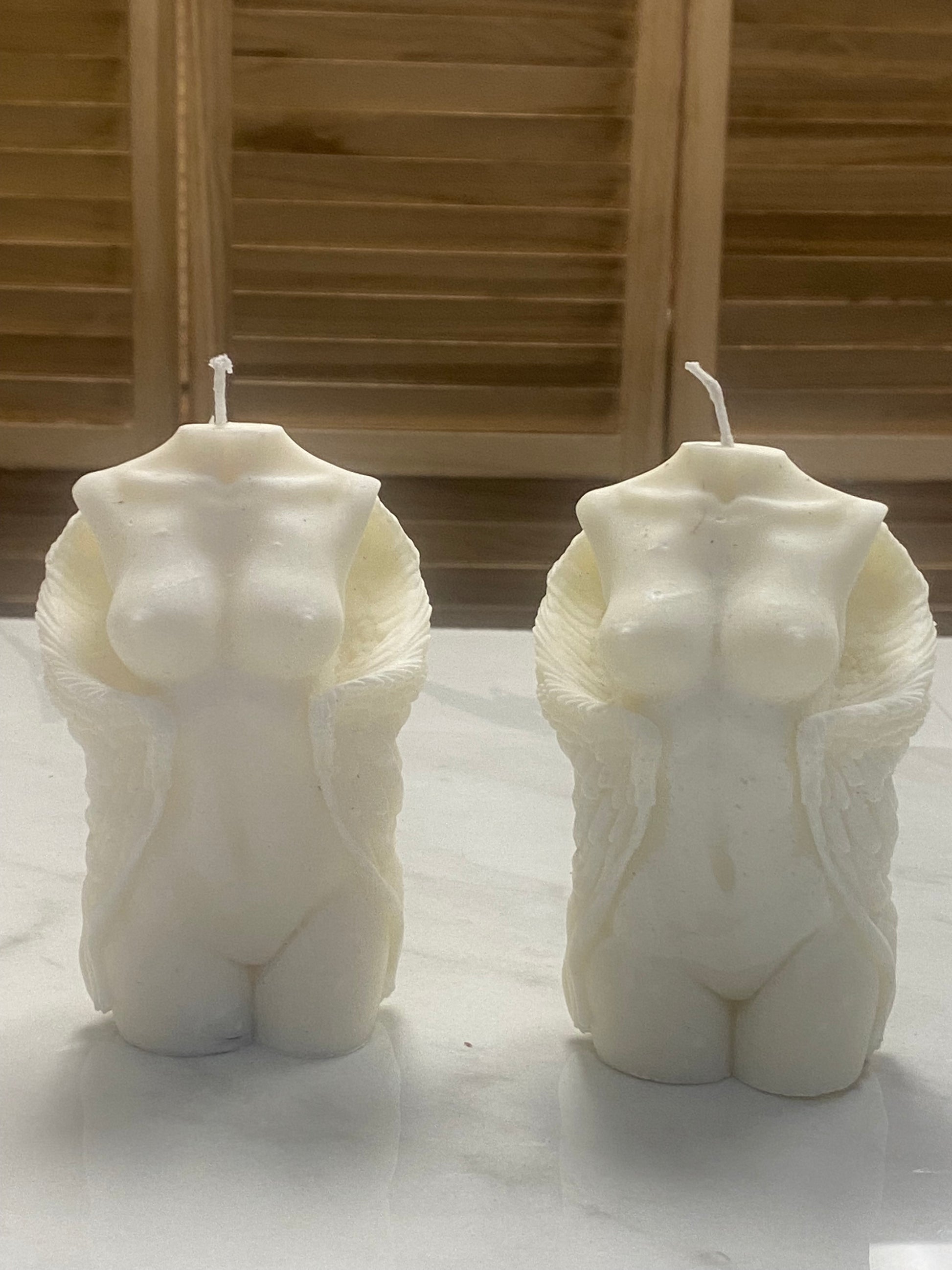 Angel made of 100% organic soy and high quality scent and wick. 4 inches