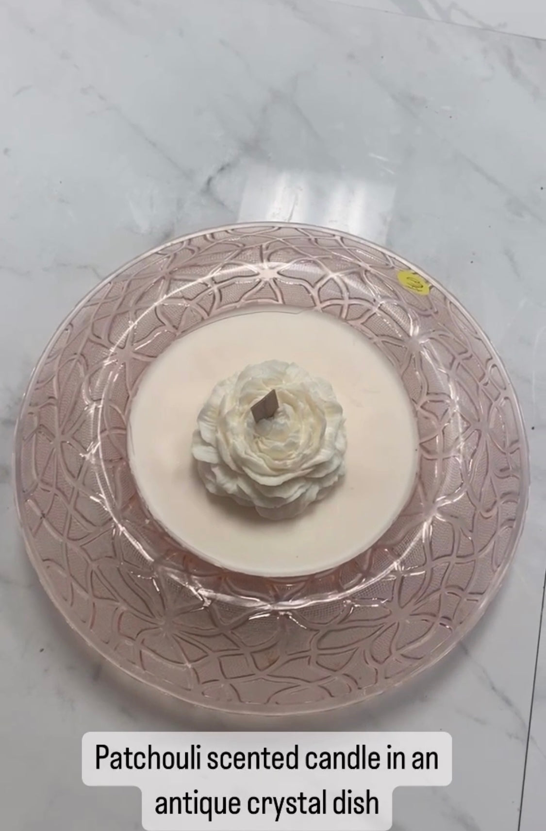 Antique Rose Crystal filled with soy wax, patchouli scented and wood wick