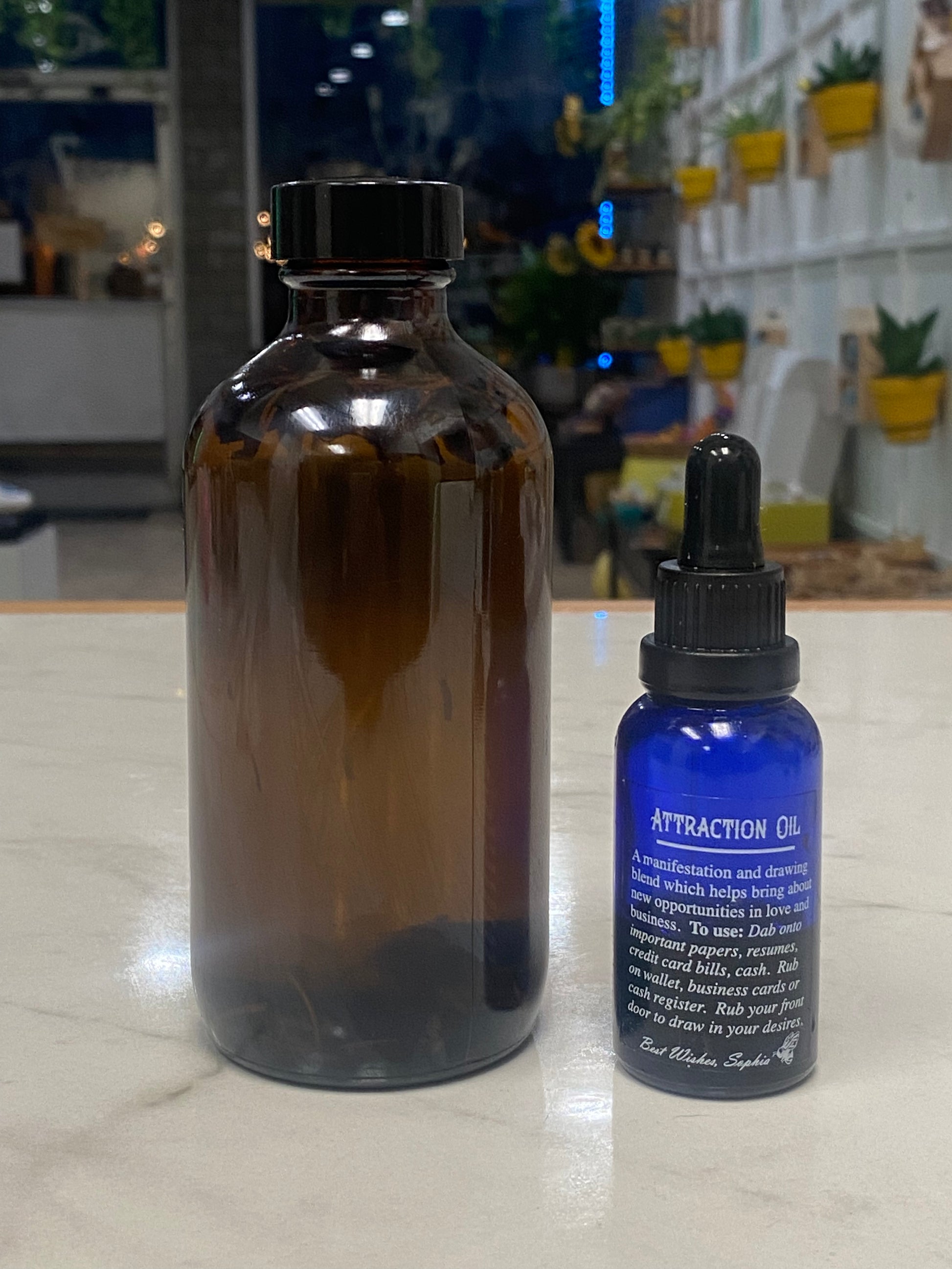 Attraction Oil is a manifestation and drawing blend which helps bring about new opportunities in love and business. It also helps bring resolve when you feel stuck, challenged or blocked. It has the power to help open new doors and bring new energy into your life. It is an ideal oil to help you put your intentions into action.