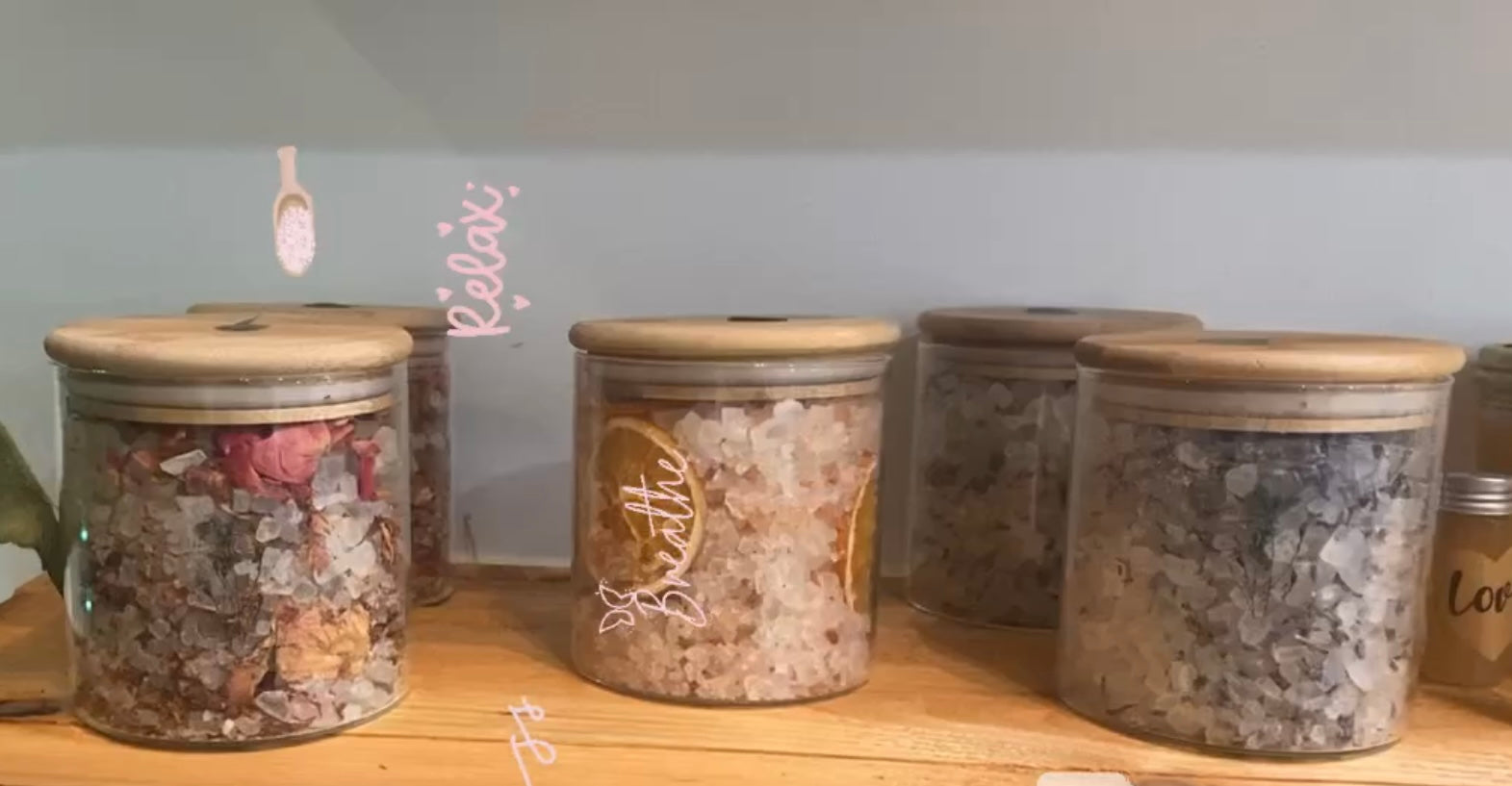 If you do not have a bath tub or are concerned about the botanicals and herbs clogging the drain, you can add them to a muslin tea bag or organza bag. If showering, you can attach the bag to the shower head and let the salts wash over you.