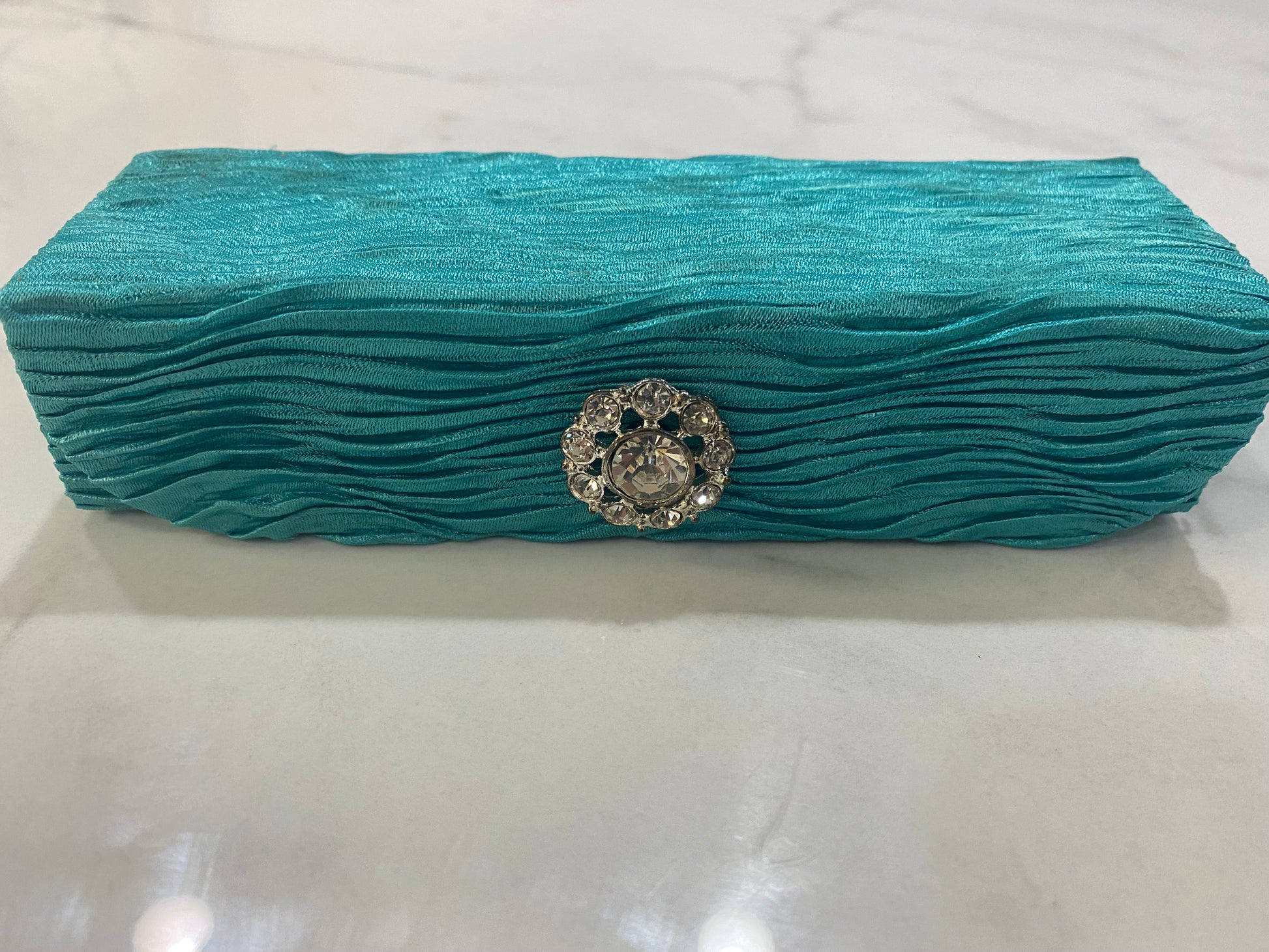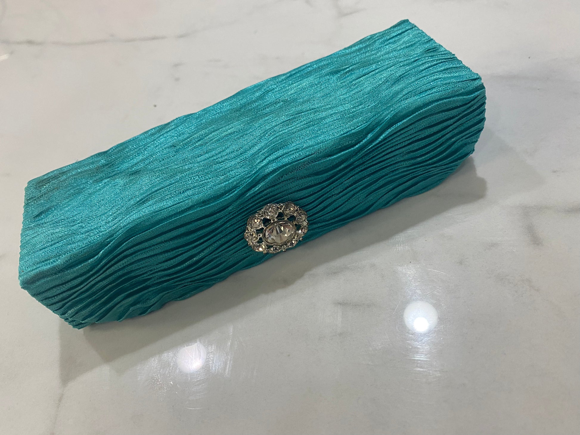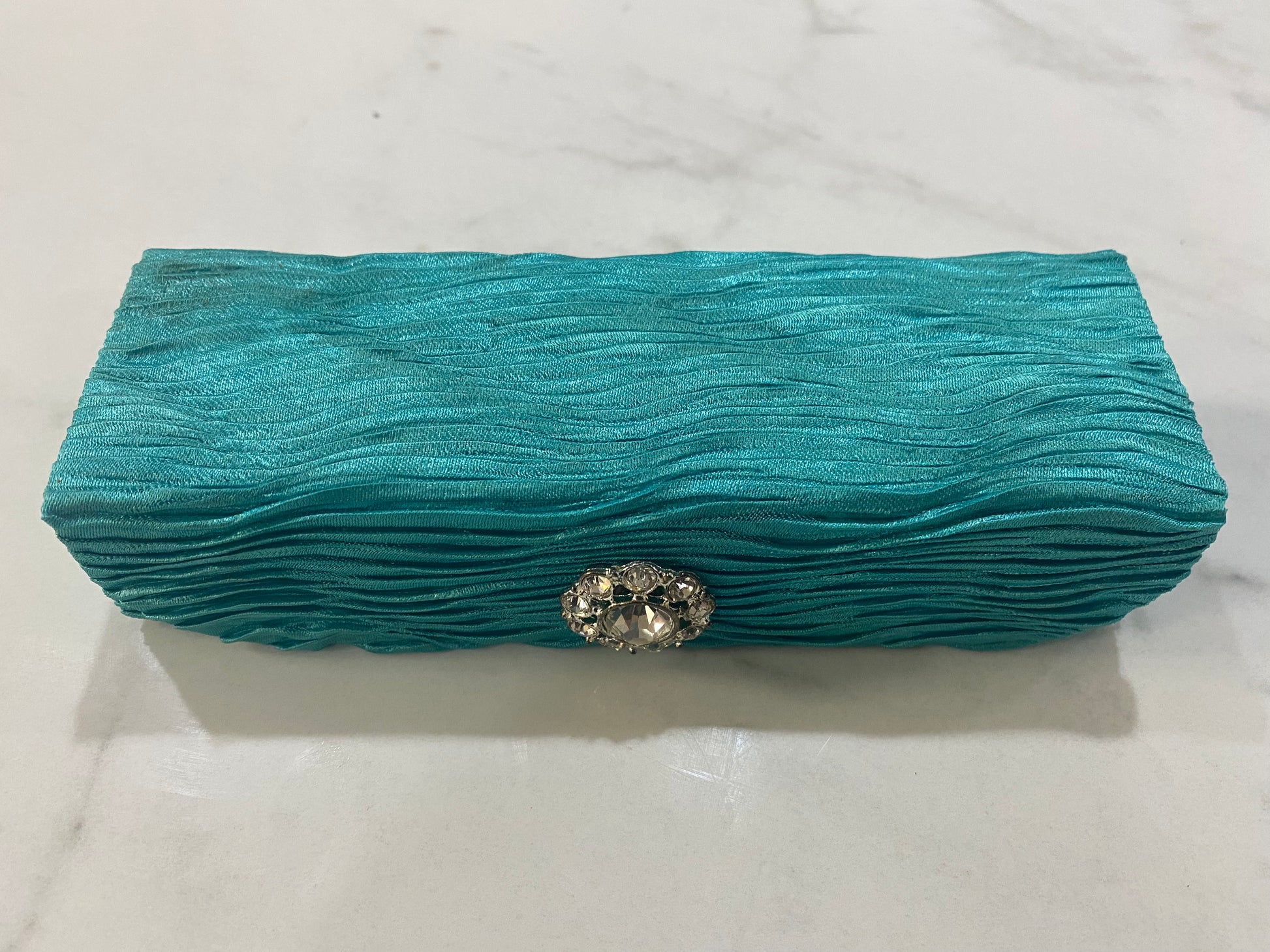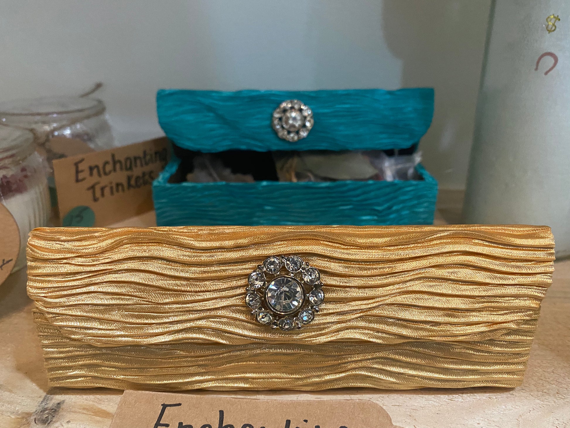 Enchanting trinkets in a keepsake rhinestone rectangular clutch.