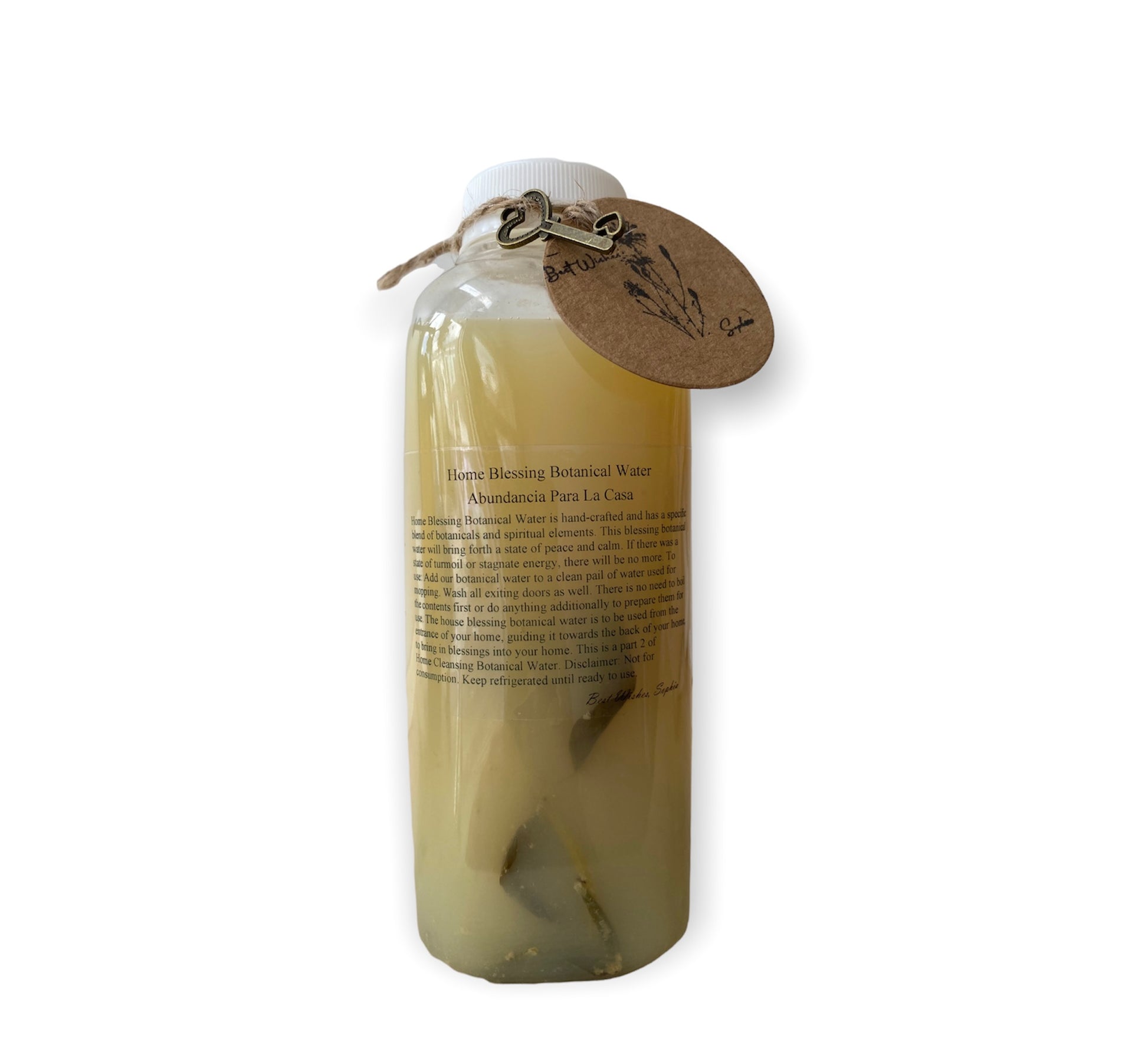 To use: Add our botanical water to a clean pail of water used for mopping. Wash all exiting doors as well. There is no need to boil the contents first or do anything additionally to prepare them for use. The botanical water is to be used from the entrance of your home, guiding it towards the back of your home, to bring in blessings into your home. Keep refrigerated until ready for use. Use a new mop!