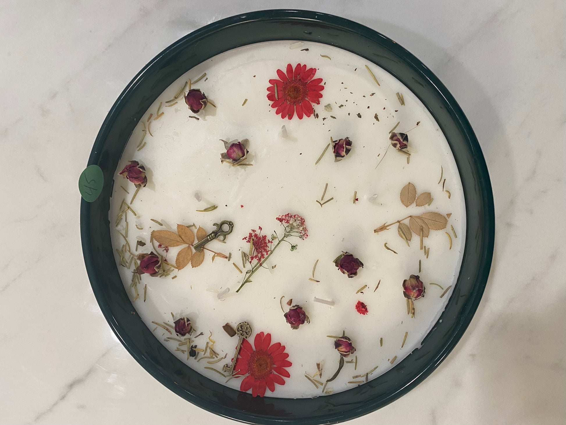 ***CAUTION***: Remove all metal pieces and crystals before lighting wick. Herbs and flowers are loosely placed so that you may remove and add to your complimentary sachet bag (carry with you or place on your alter).