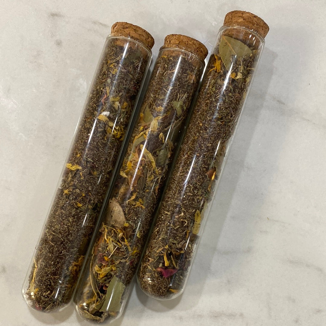 Ritual bath: Fill your complimentary charm bag with the herbal blend and place in your tub and soak (you can add crystals, candles, etc., and don’t forget to think and speak your intention) -If you do not have a tub, place the charm bag under the faucet in your shower or on the shower floor.