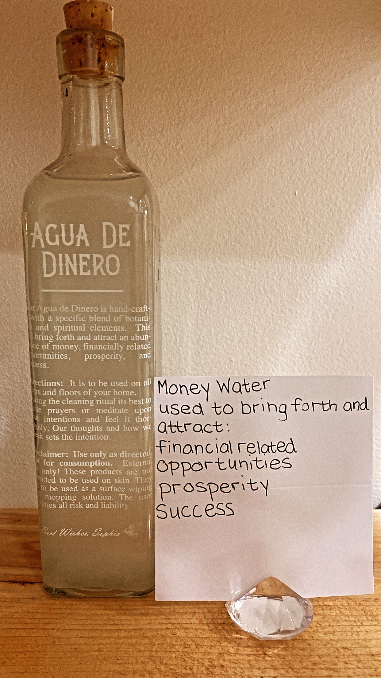 Our Agua de Dinero is hand-crafted with a specific blend of botanicals and spiritual elements. This will bring forth and attract an abundance of money, financially related opportunities, prosperity, and success.