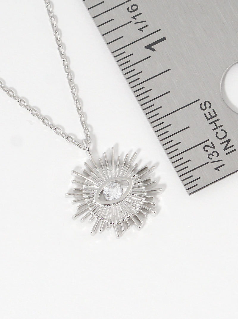 White Gold Dipped Cubic Zirconia Evileye Pendant Delicate Necklace